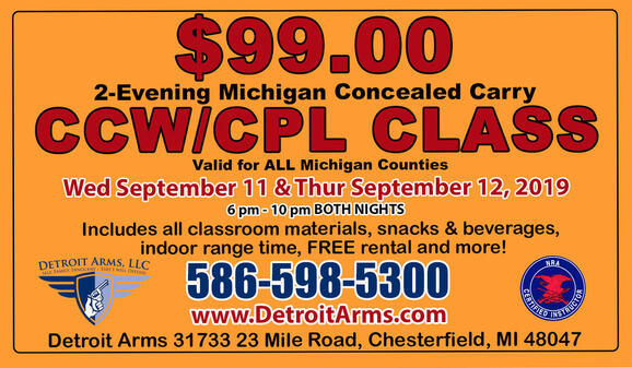 Michigan Ccw Michigan Cpl Class Concealed Carry Handgun www.detroitarms.com