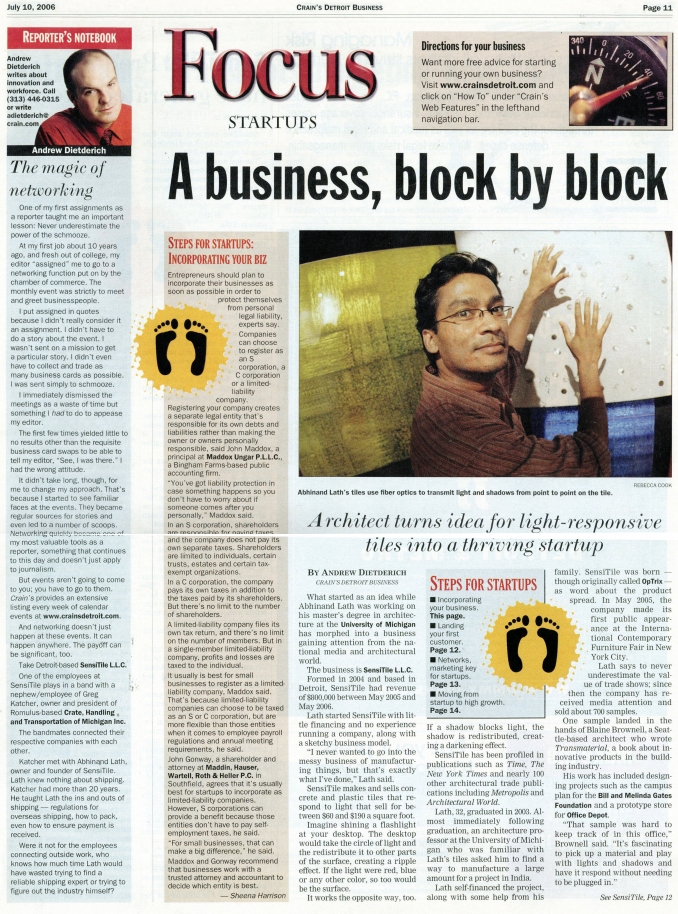 Crain S Detroit Business Reviews Sensitile As A Thriving Startup www.sensitile.com