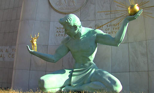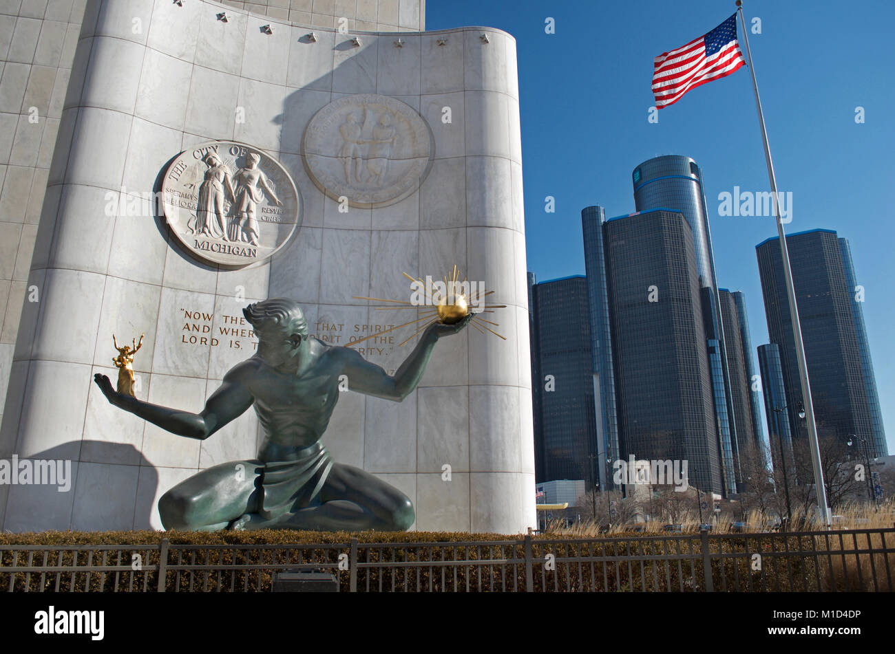 Spirit Of Detroit Seen With A Mask As City And State Leaders