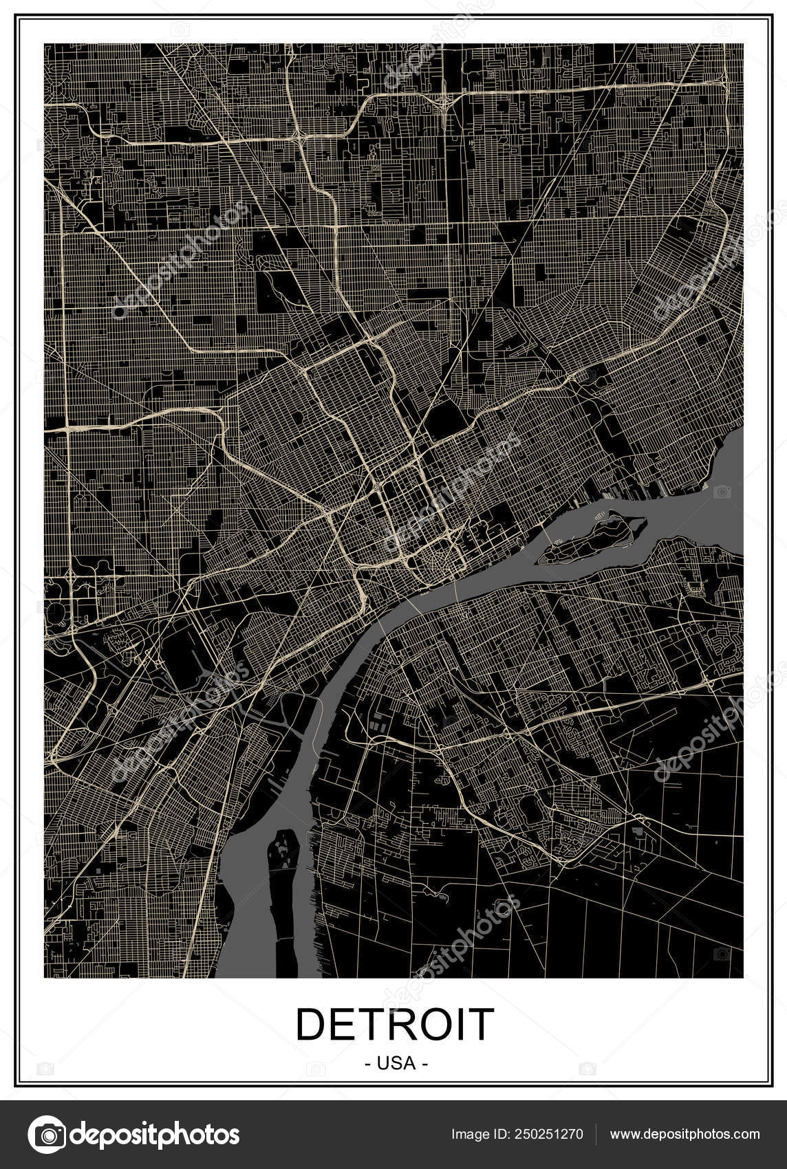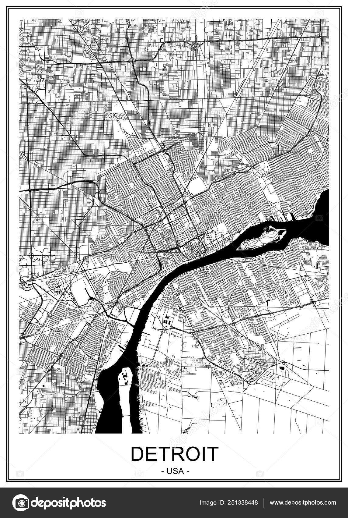 Detroit Map With Local Streets In Adobe Illustrator Vector Format