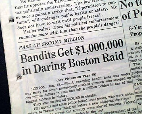 Amazon Com The Great Brink S Robbery 1 Million Boston Crime Of The Century 1950 Newspaper The Detroit News Michigan Jan 18 1950 Entertainment Collectibles