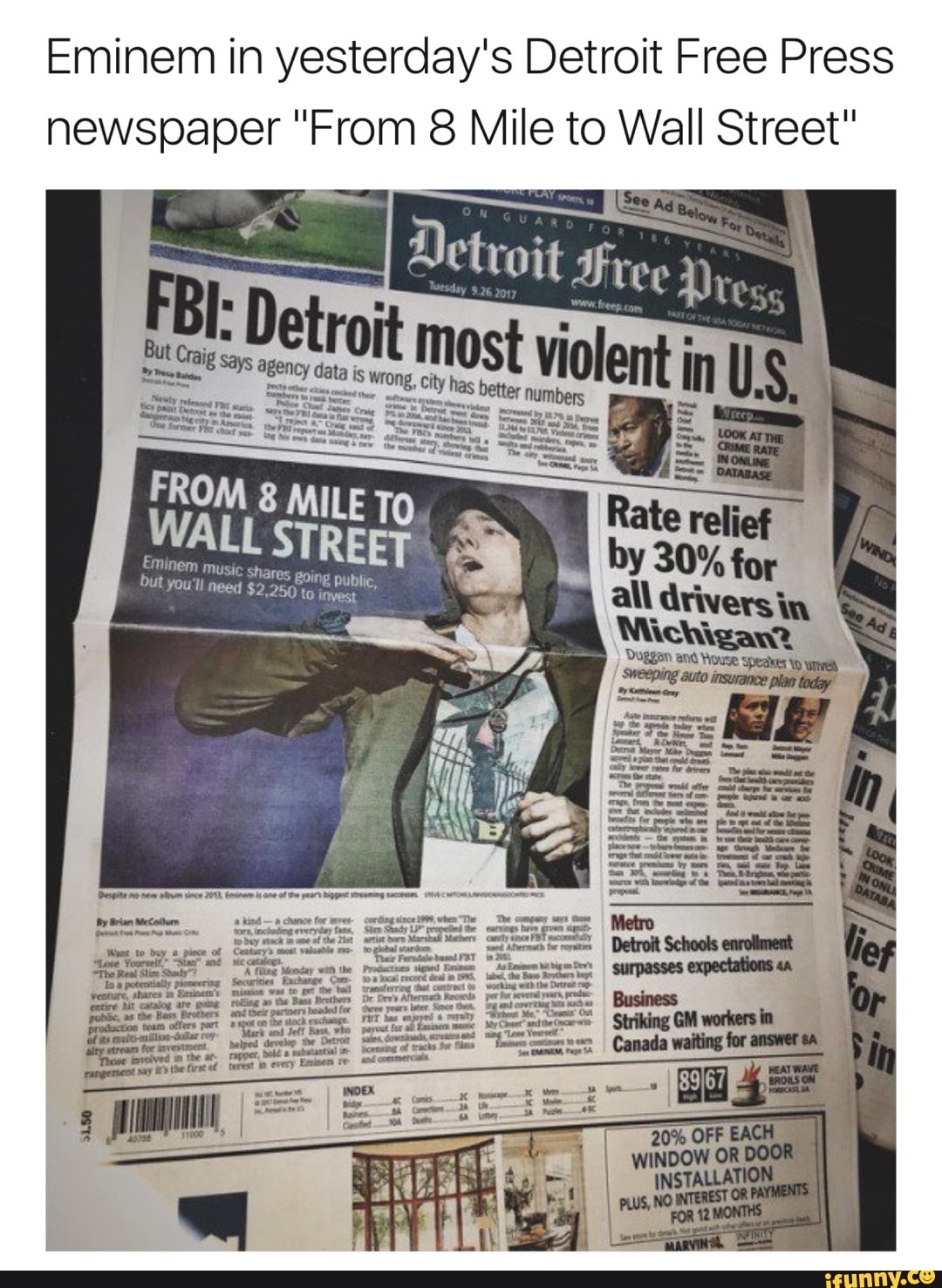 Eminem In Yesterday S Detroit Free Press Newspaper From 8 Mile To ifunny.co