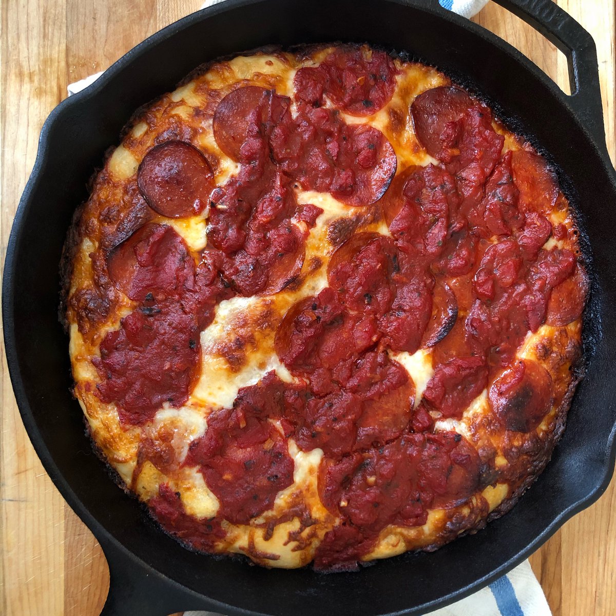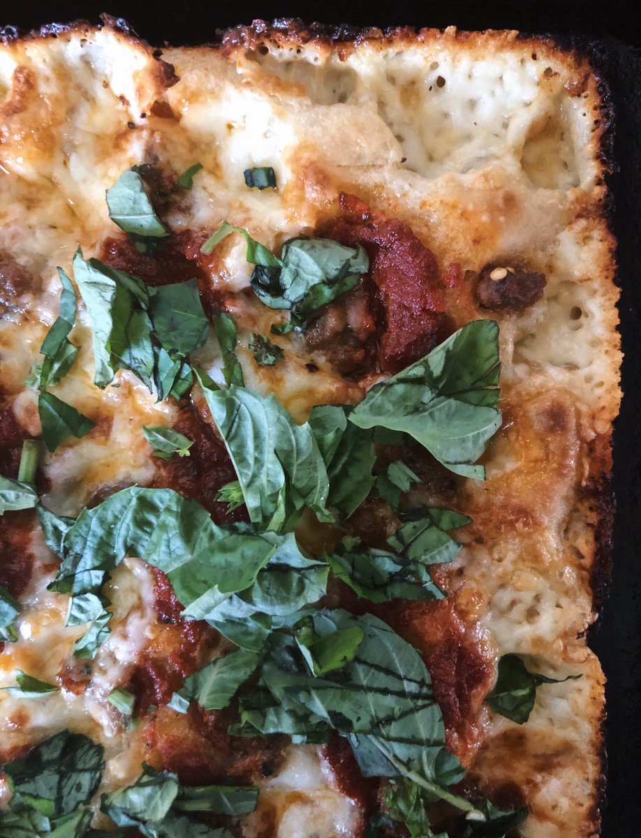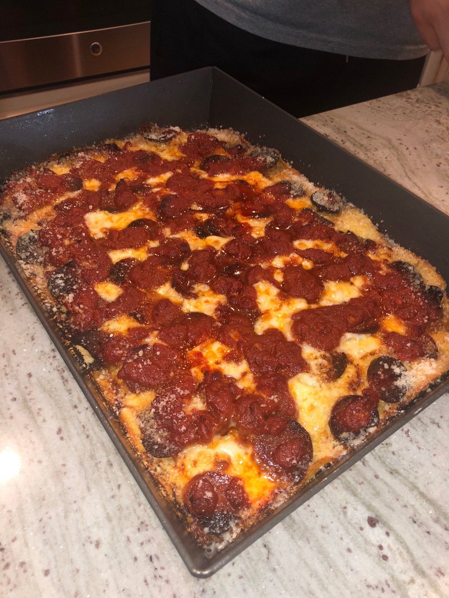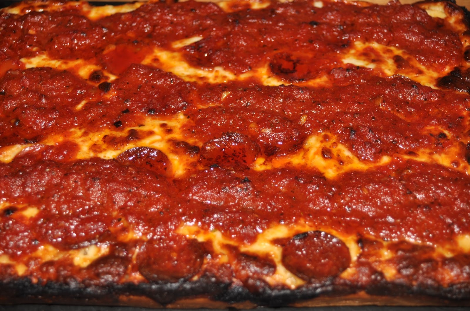 Detroit Style Pepperoni Pizza With Hot Honey And Goat Cheese