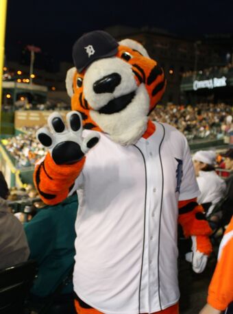 The Detroit Tigers Mascot Paws Poses For A Photo Prior To The Star