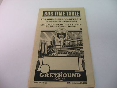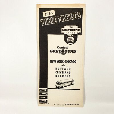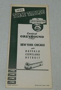 1936 Central Greyhound Bus Lines Timetable New York Chicago