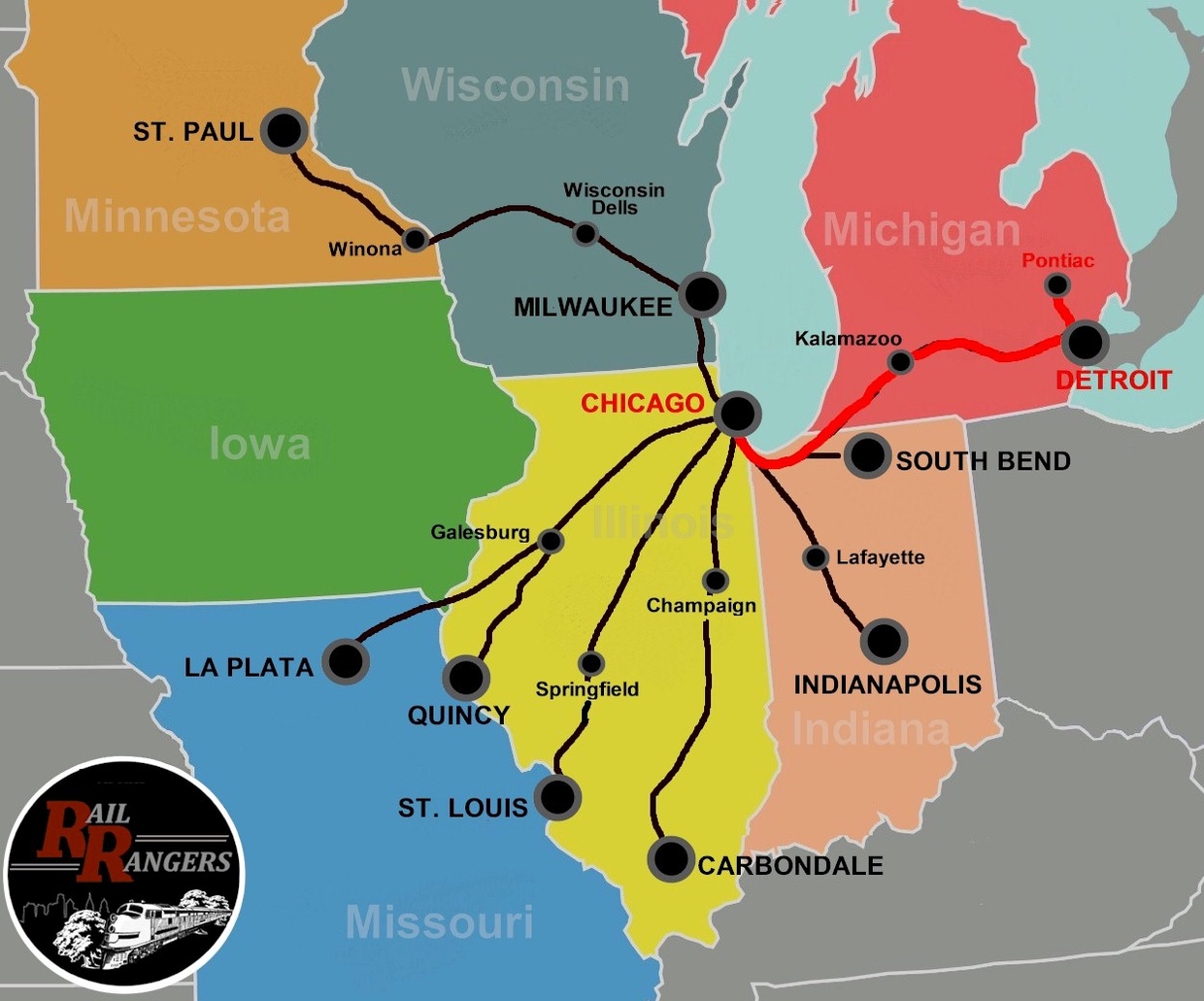 Route Highlights Sheets Chicago To Detroit Pontiac M Midwest