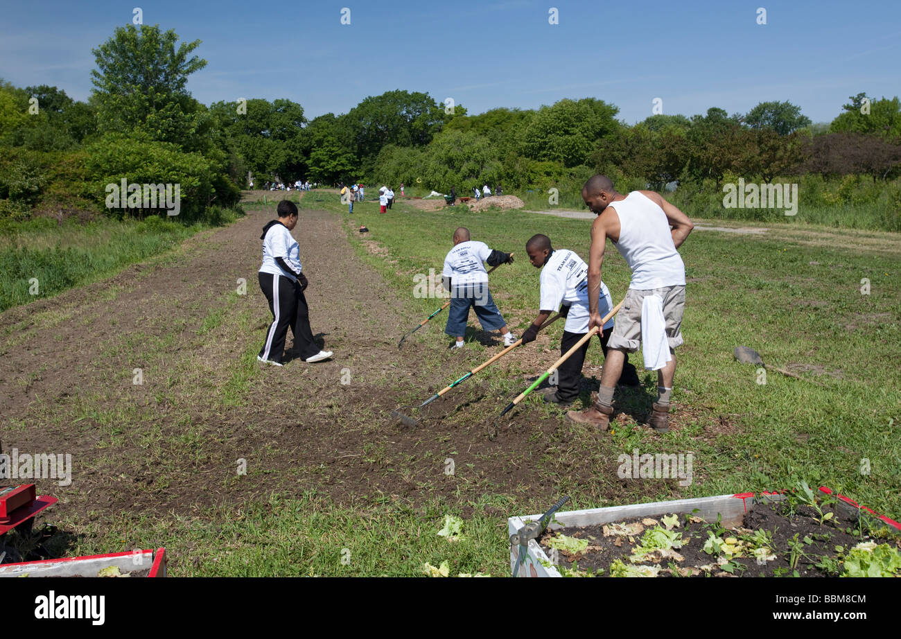 Volunteers Working Hard With The Michigan Urban Farming Initiative