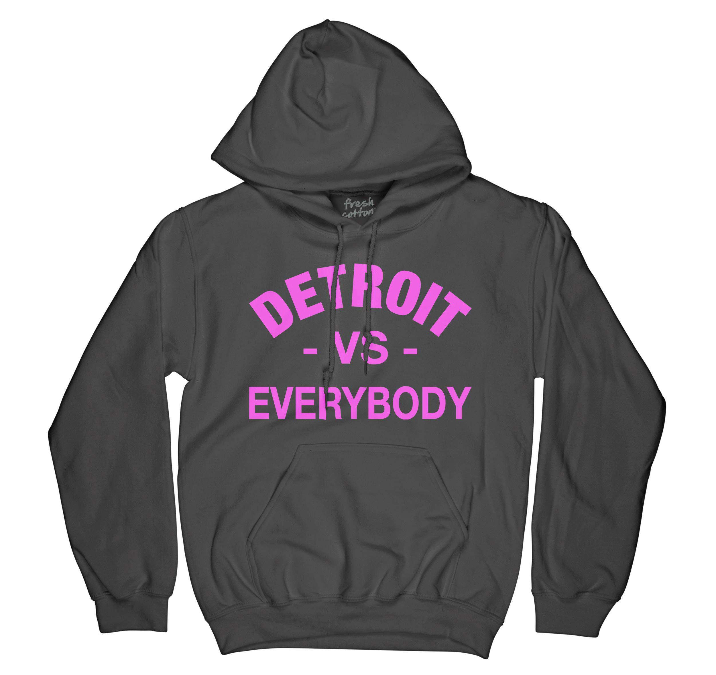 Detroit Vs Everybody Pull Over Black Hoodie With Neon Pink Logo