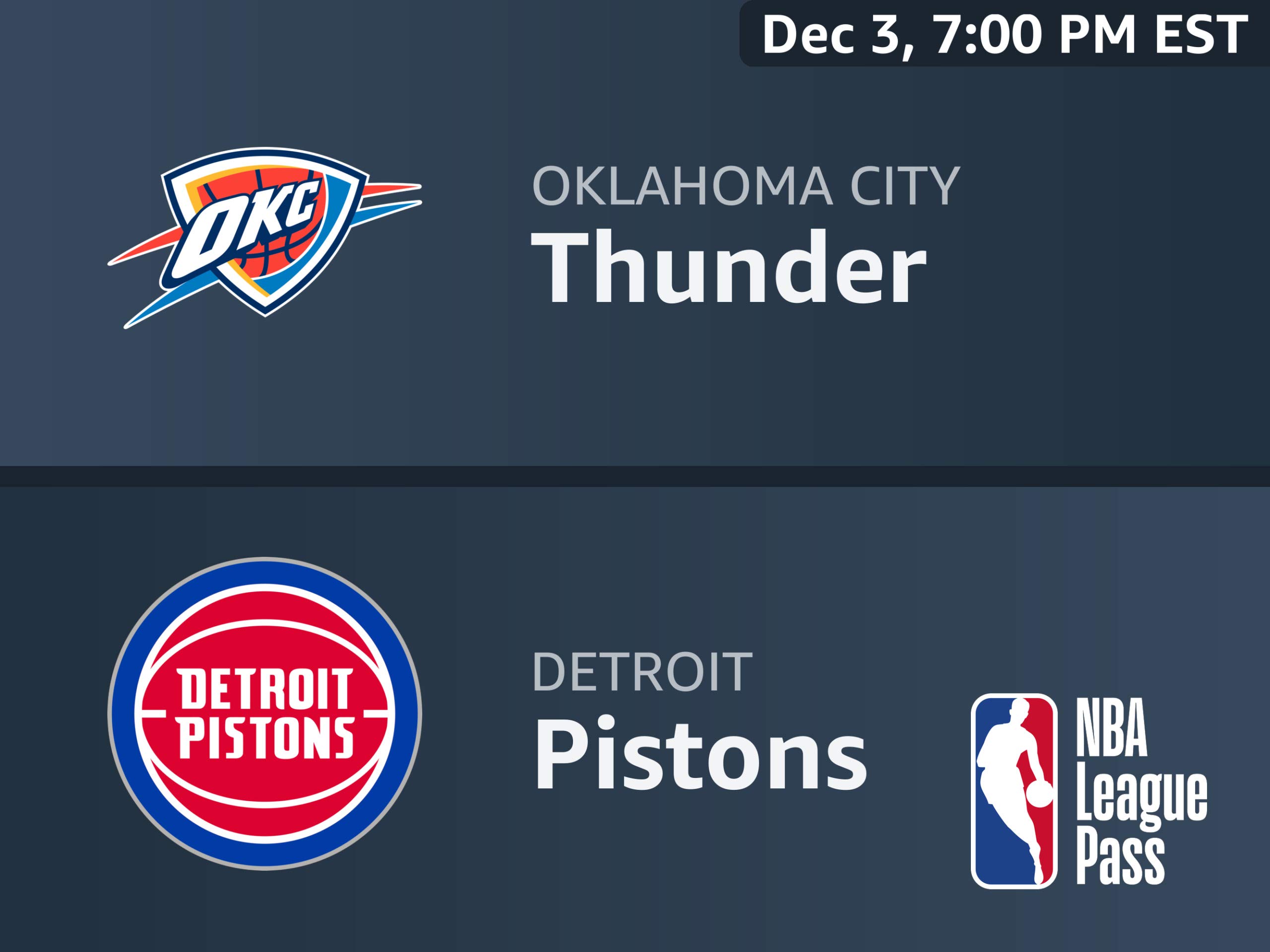 Detroit Pistons Vs Oklahoma City Thunder Tickets 3rd December