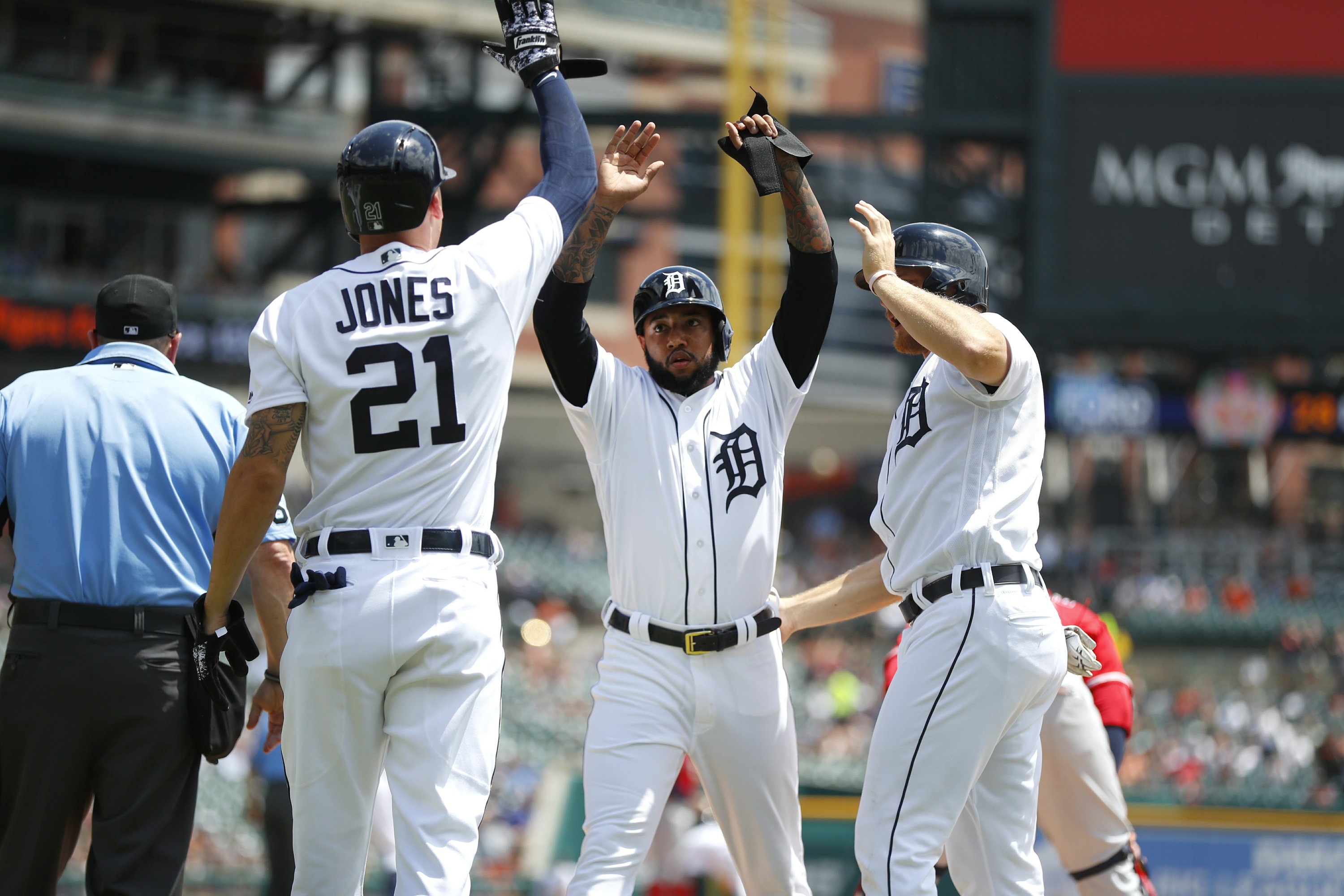 Detroit Tigers Ronny Rodriguez Right Reacts Hitting Editorial
