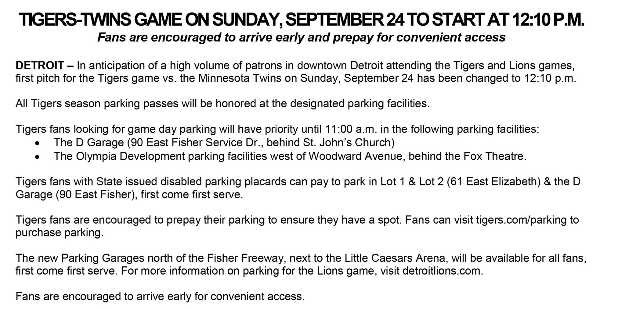 Traffic Parking Info For World Series Games At Comerica Park In