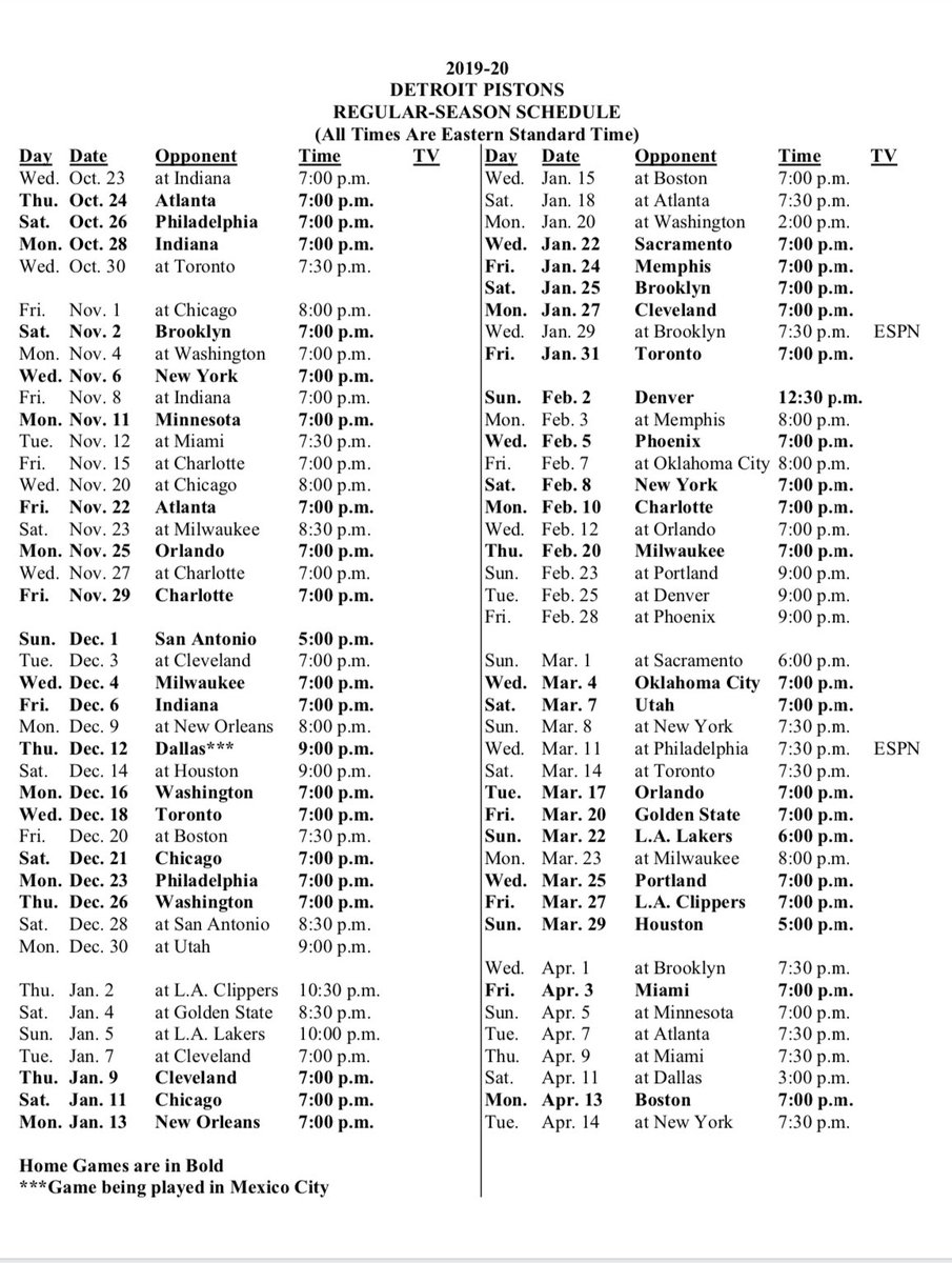 Detroit Pistons 2019 20 Tv Schedule Mlive Com